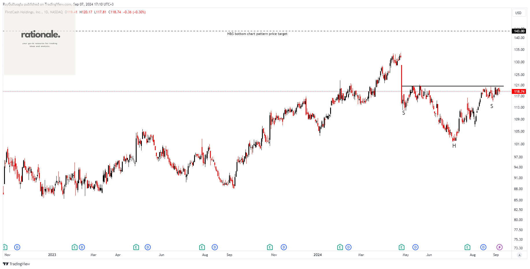 A daily close above 124.21 levels would validate the breakout from the 3-month-long H&S bottom chart pattern.