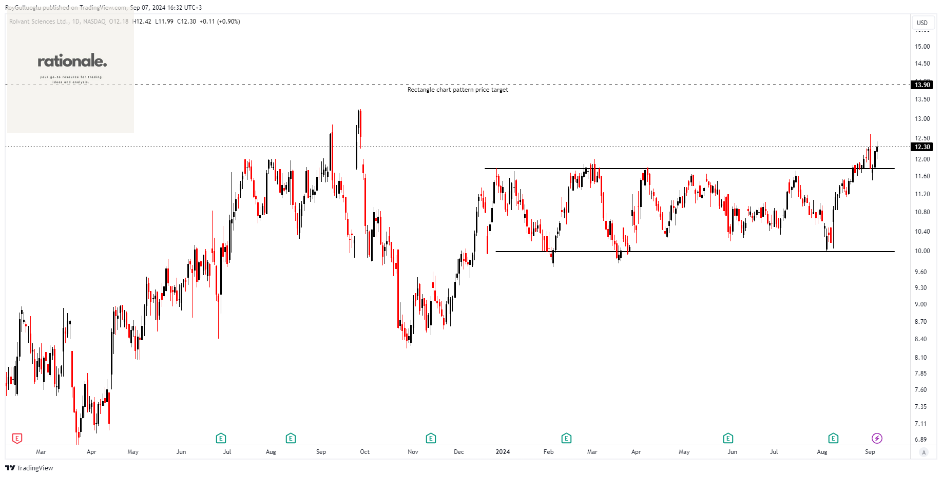 A daily close above 12.12 levels validated the breakout from the 6-month-long rectangle chart pattern.