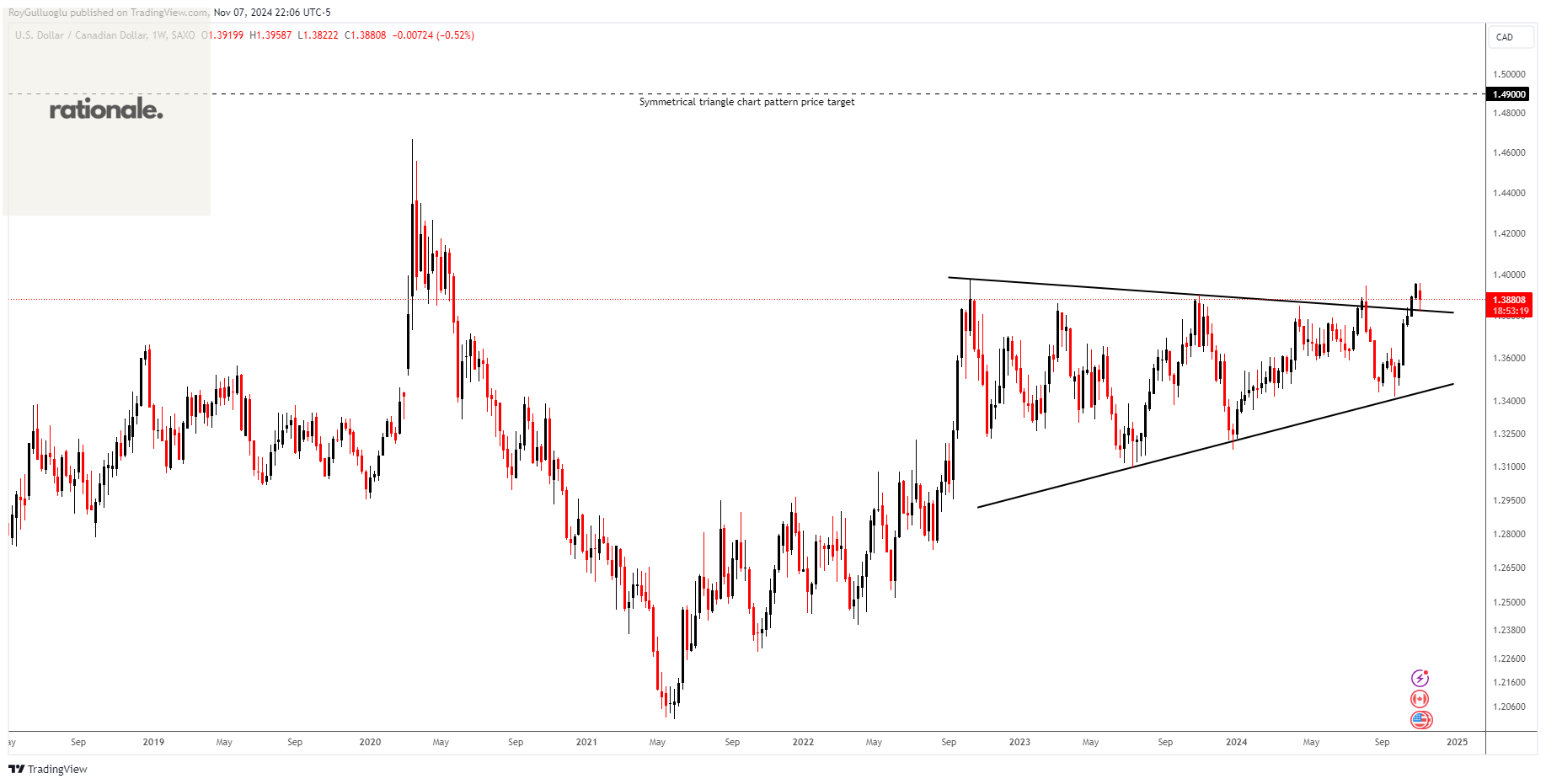 Based on this chart pattern, the potential price target is approximately 1.49 levels.