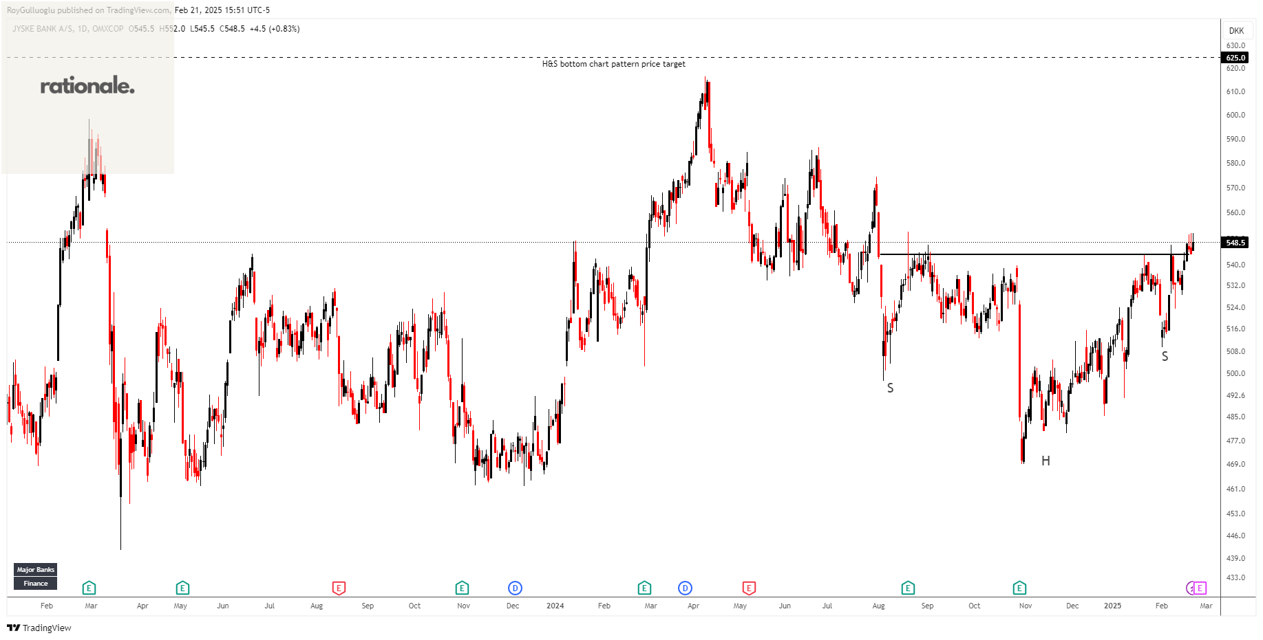 Based on this chart pattern, the potential price target is 625 levels.