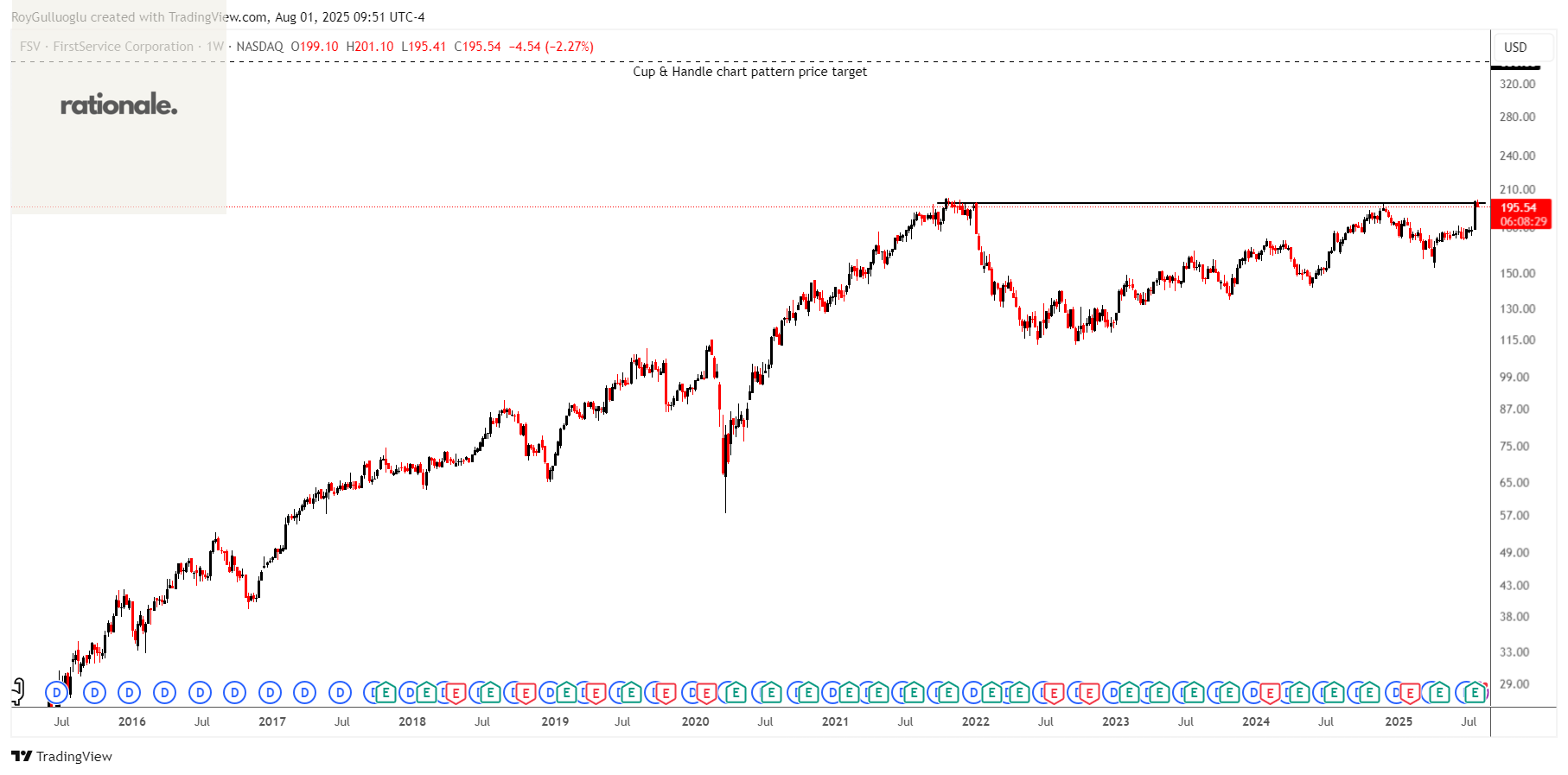 The above weekly chart formed an approximately 50-month-long cup & handle chart pattern as a bullish continuation after an uptrend.