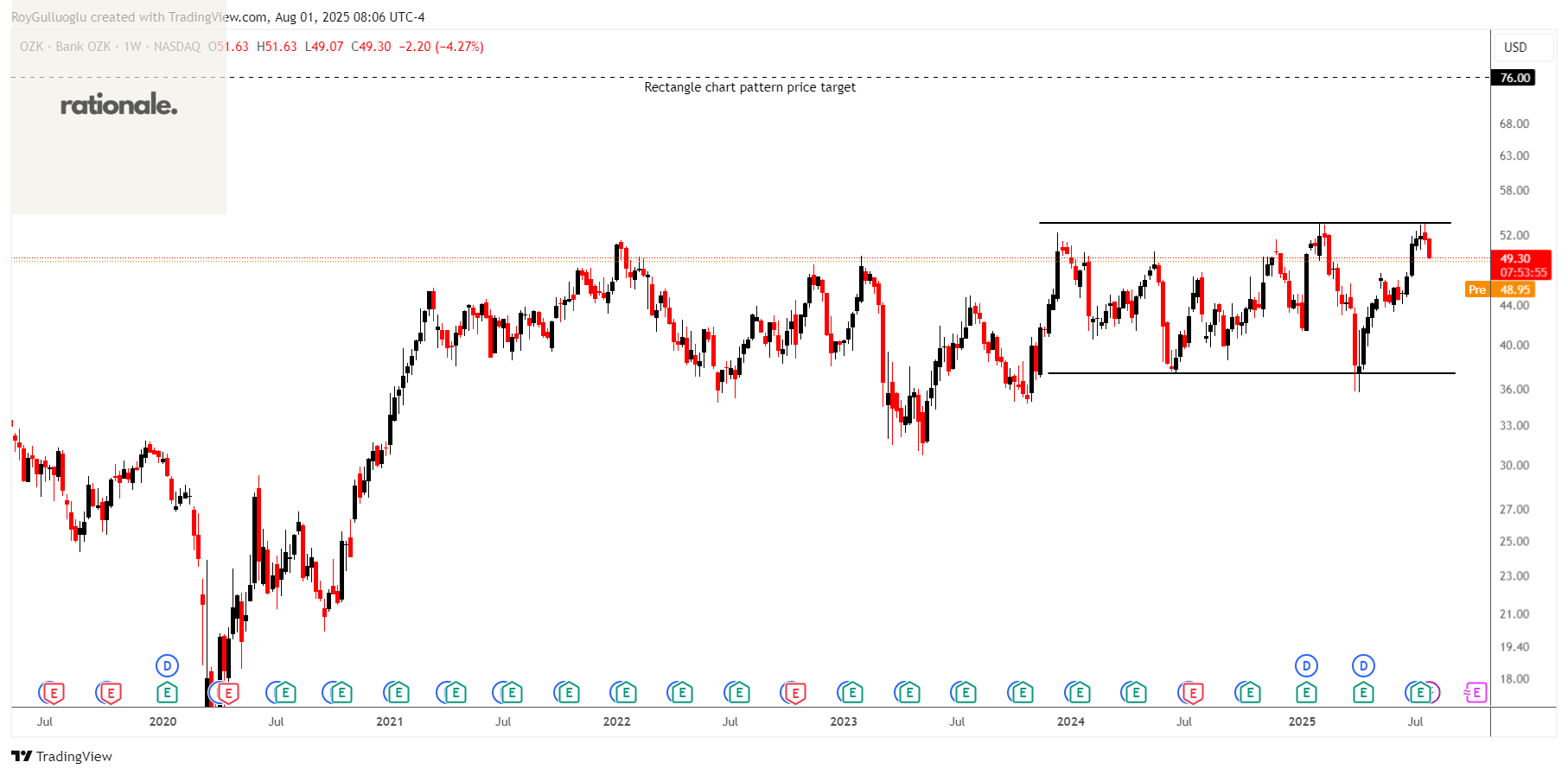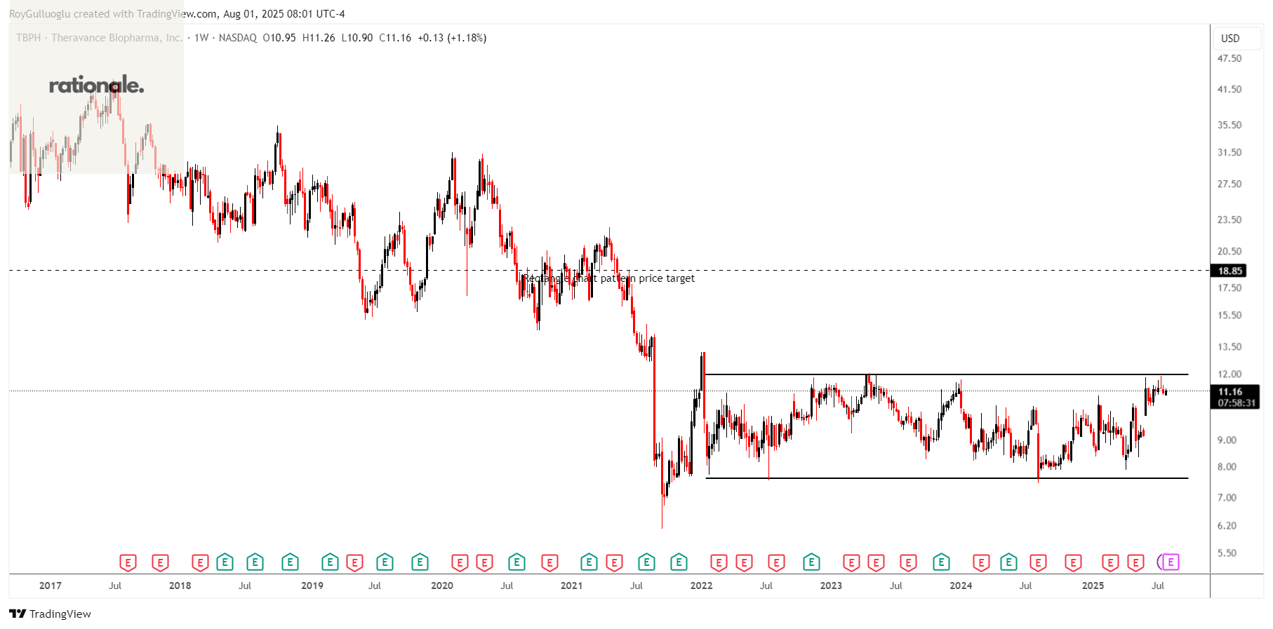 The above weekly chart formed an approximately 20-month-long rectangle chart pattern as a bullish reversal after a downtrend.