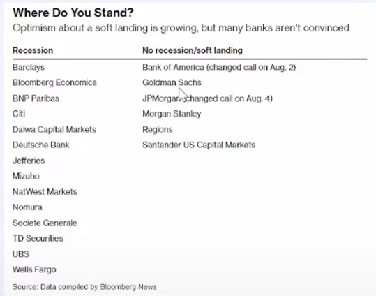 The main topic of 2023 was the “Soft Landing”. With the recent data flow, the market started to be convinced. The below table shows banks’ views on the recession.