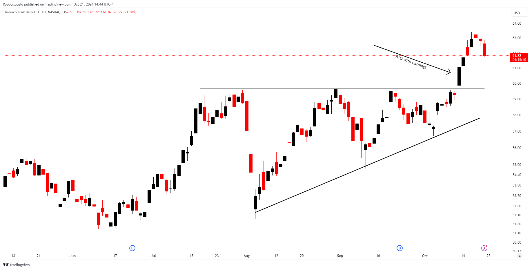 a) Strong earnings expectations as we received some from banks. Banks collectively provided strong guidance on their outlooks, which drove the KWB Bank Index higher.