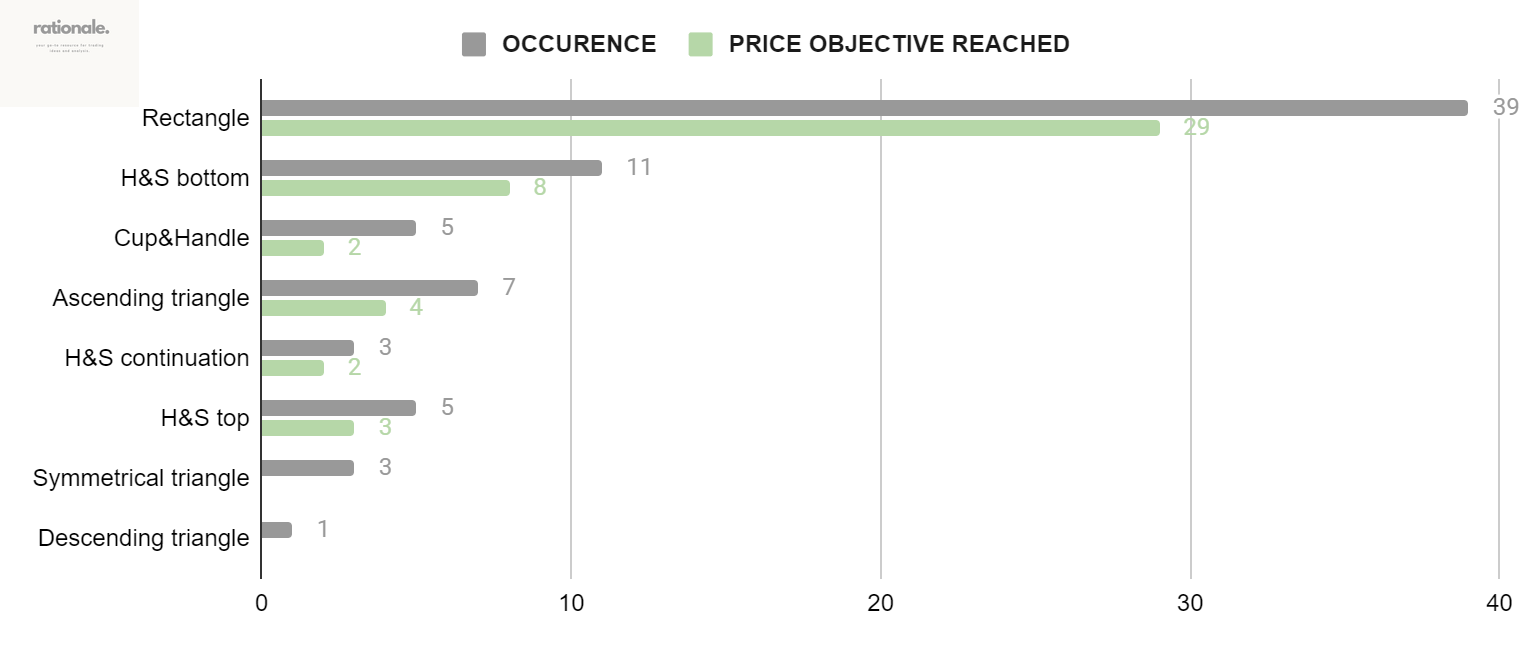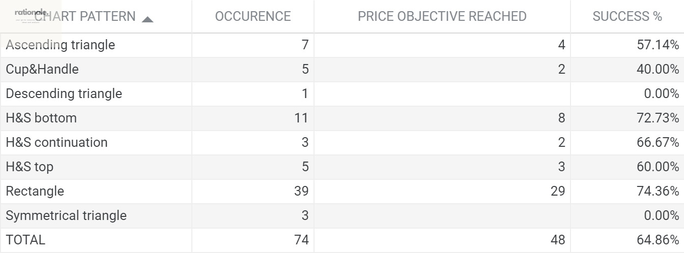 WIN: The financial instrument’s price reaches the chart pattern price objective after the breakout or breakdown. The chart pattern price target may not necessarily be utilized as a take profit level.