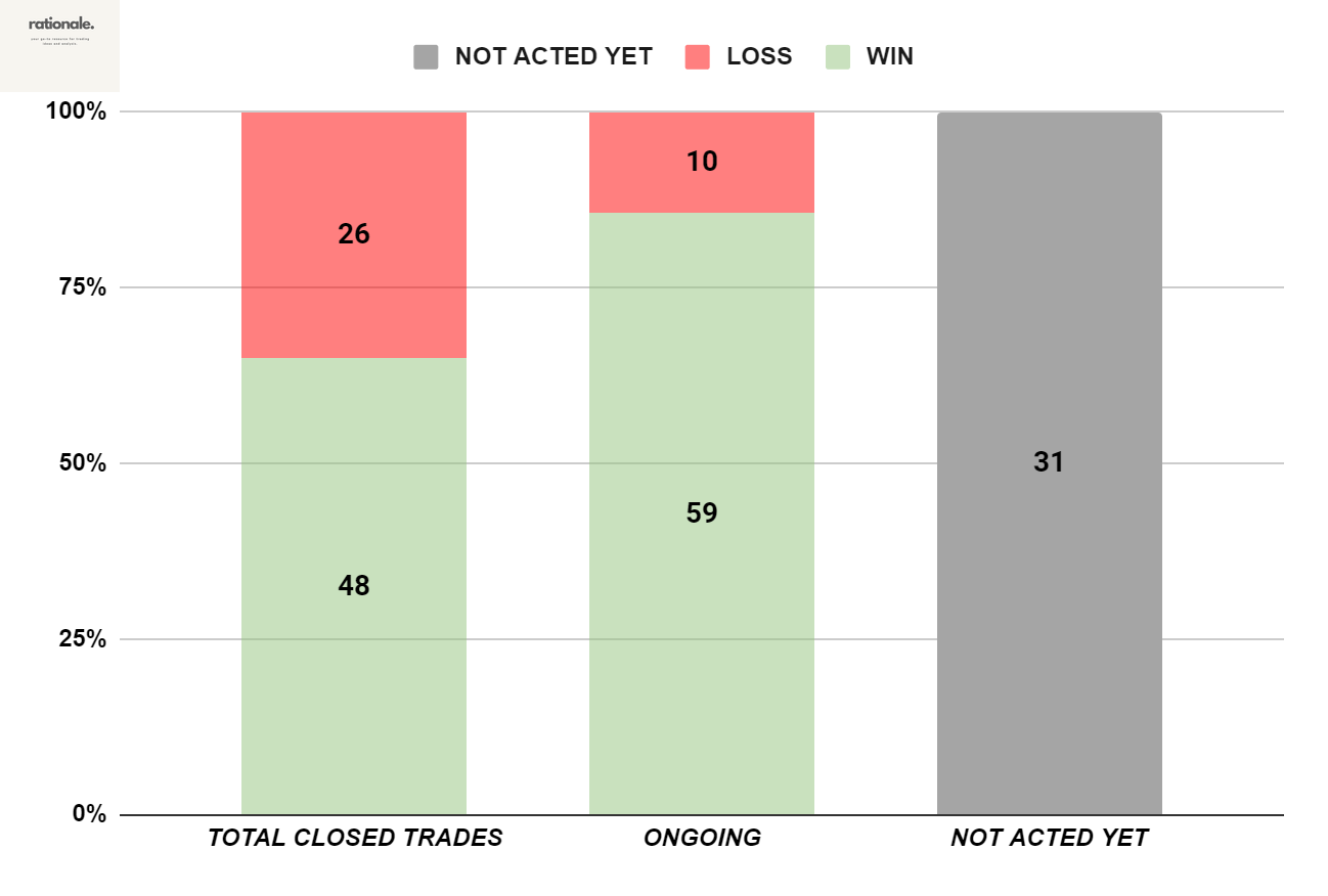 In this edition of Rationale, the performances of trade ideas that have been given since April 2023 will be covered. In line with committing to transparency and delivering valuable insights, I will examine essential metrics and performance indicators. Let`s start !!