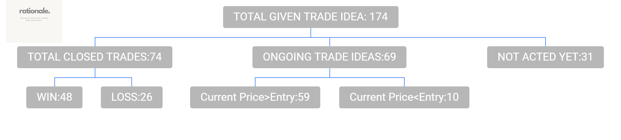 First, it would be better to start with defining the categories of the `rationale trade ideas` according to their current circumstance. Rationale tracks trade ideas in four categories: Winners, Losers, Ongoing, and Not acted yet.