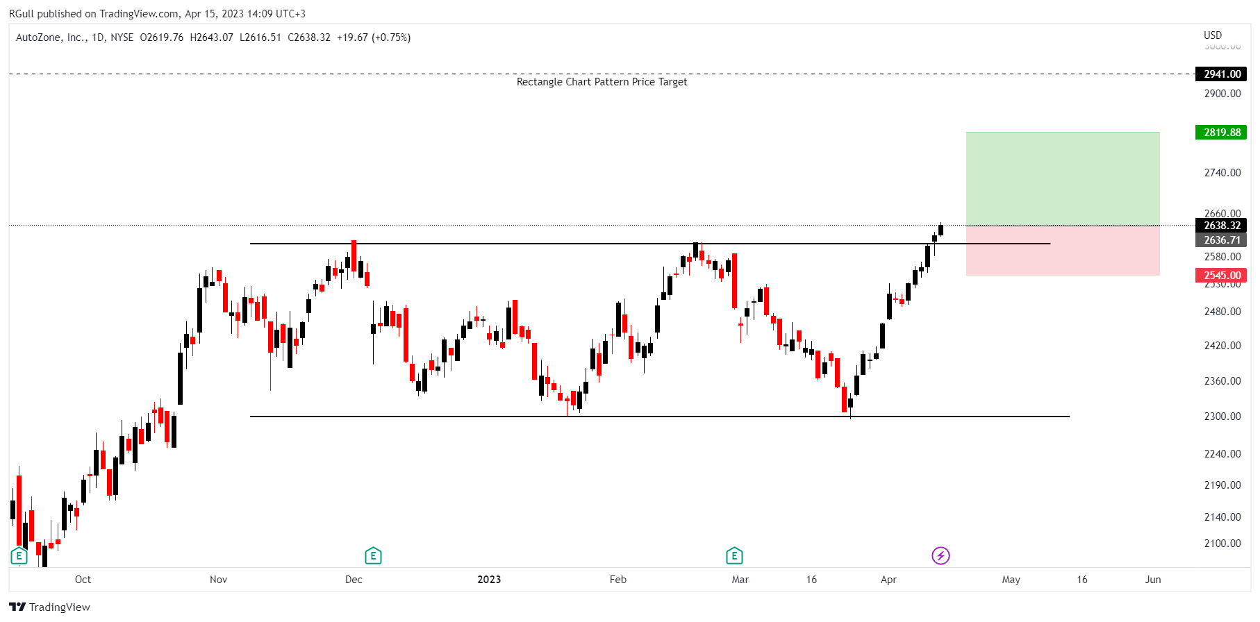 The price chart formed an approximately 5-month-long Rectangle Chart Pattern Price Target as a bullish continuation in an uptrend with the horizontal boundary acting as resistance at 2603 levels.