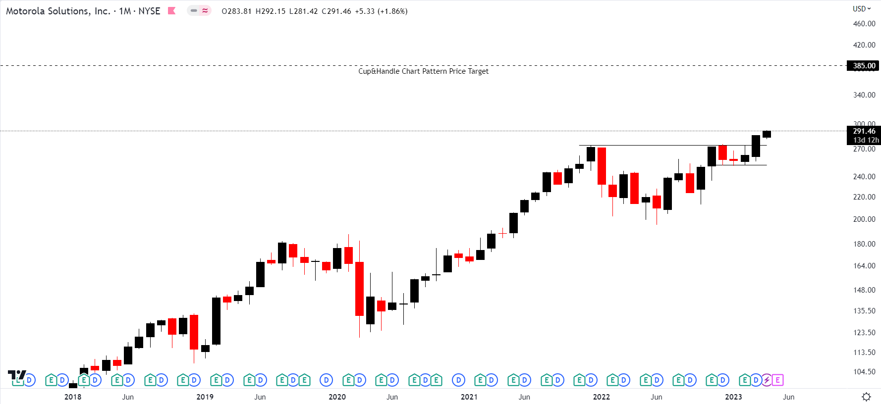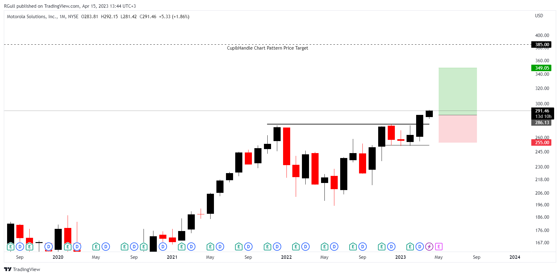 The price chart formed an approximately 1.5-year-long Cup & Handle Chart Pattern Price Target as a bullish continuation in an uptrend with the horizontal boundary acting as resistance at 275 levels.