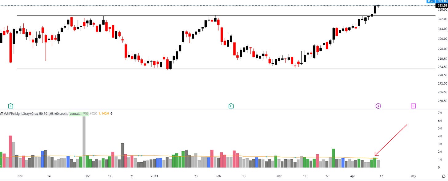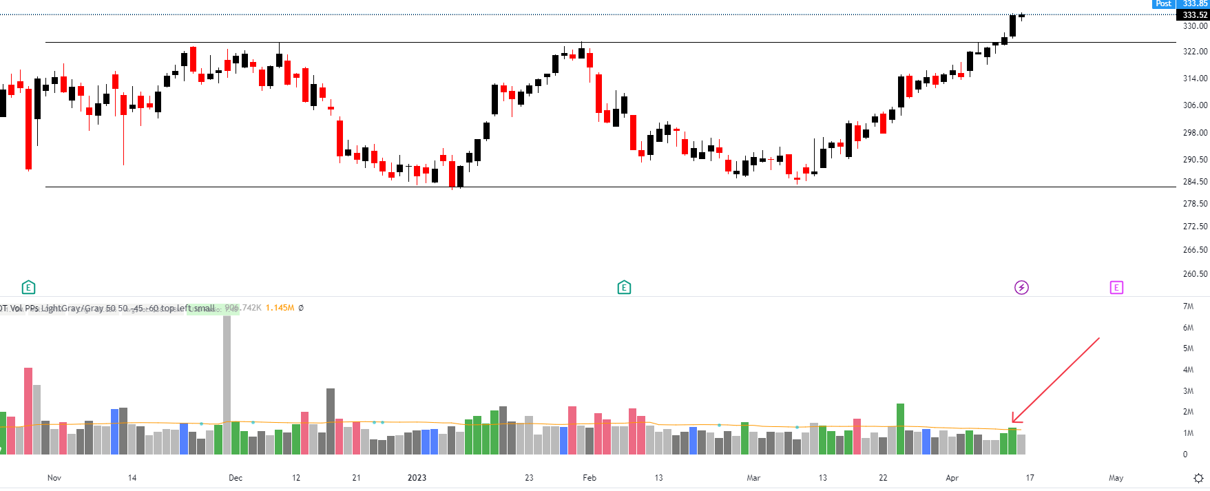 The breakout bar came with a 10-day pocket pivot which is known as a positive volume bigger than the max negative volume within the last 10 days. Tracking it is very crucial to get an insight into institutional investors’ interests.