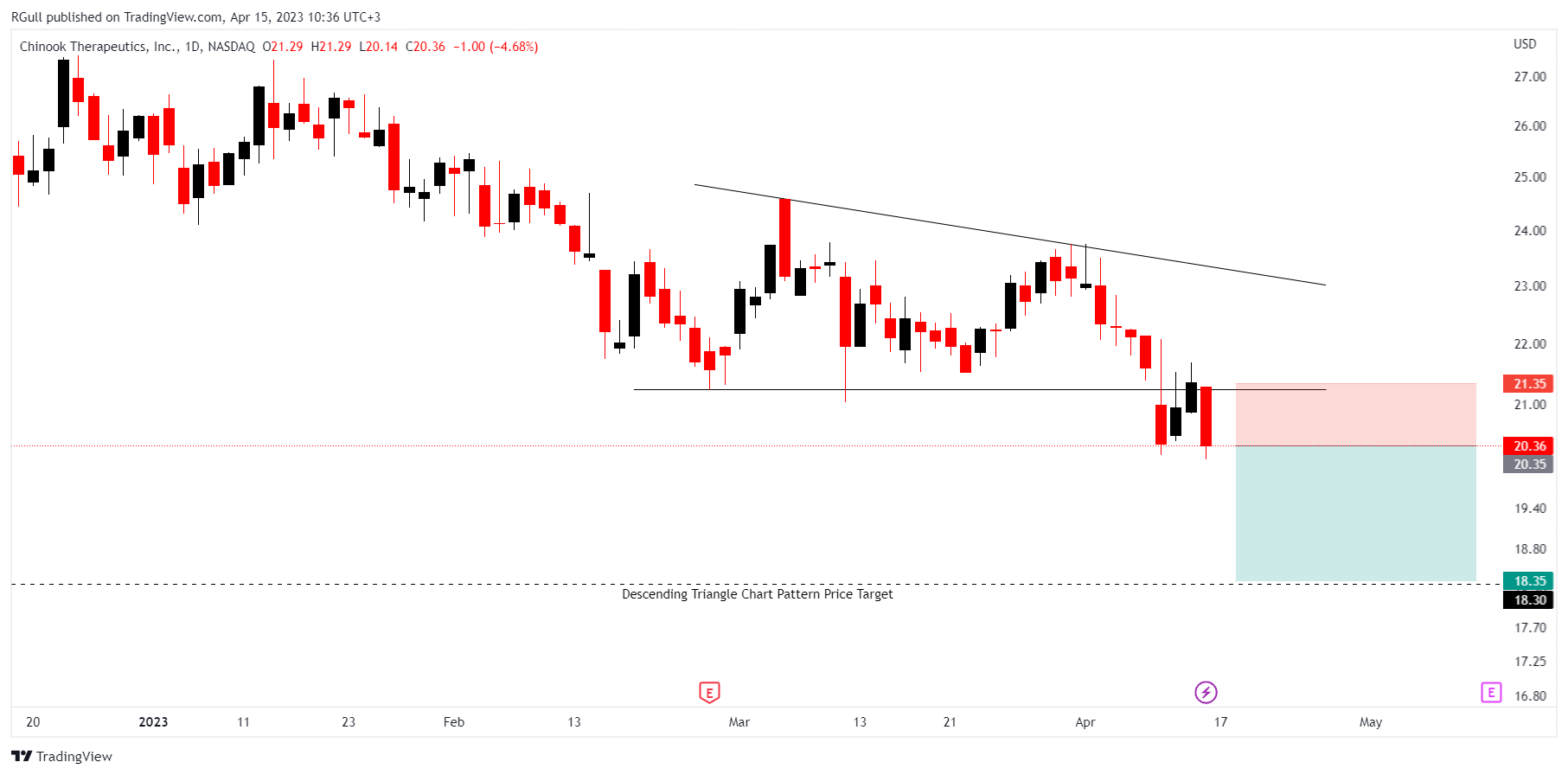 The price chart formed an approximately 2-month-long Descending Triangle Chart Pattern as a continuation pattern in a downtrend with the horizontal boundary acting as support at 21.25 levels.