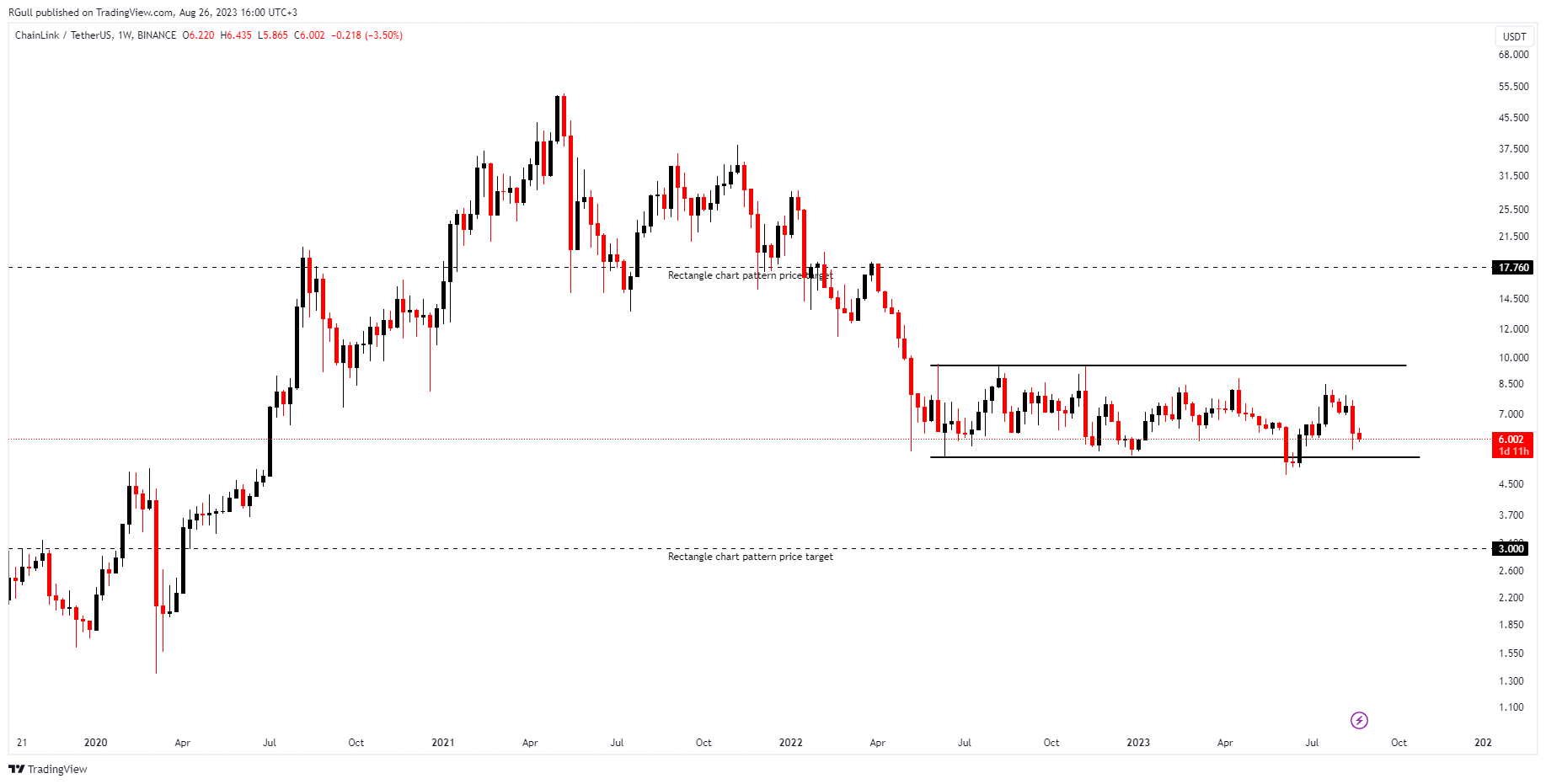 The above weekly chart formed an approximately 14-month-long Rectangle chart pattern, with support at the 5.3 level and resistance at the 9.5 level.