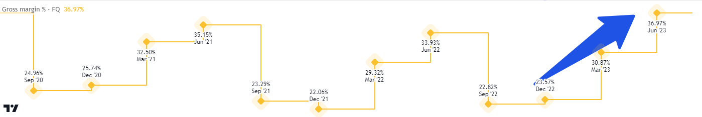 Gross margin(profit margin) acceleration YoY in Quarterly Earnings is another plus.