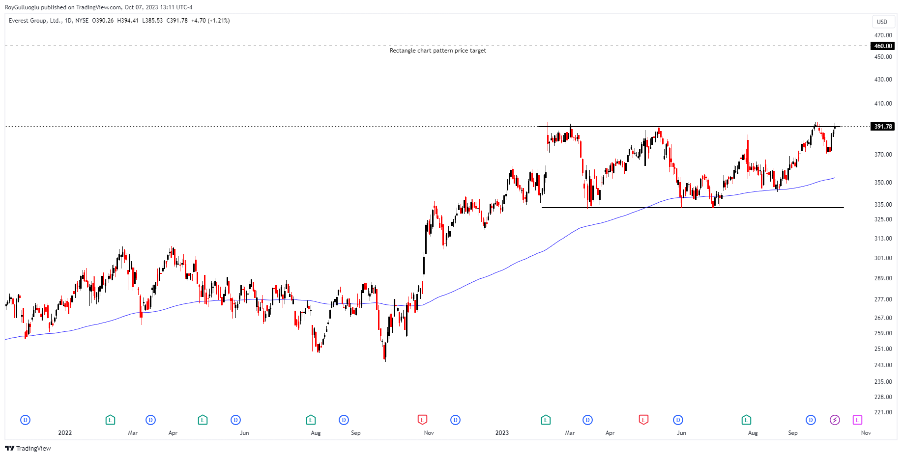 A daily close above 399$ levels would validate the breakout from the 5-month-long Rectangle chart pattern.