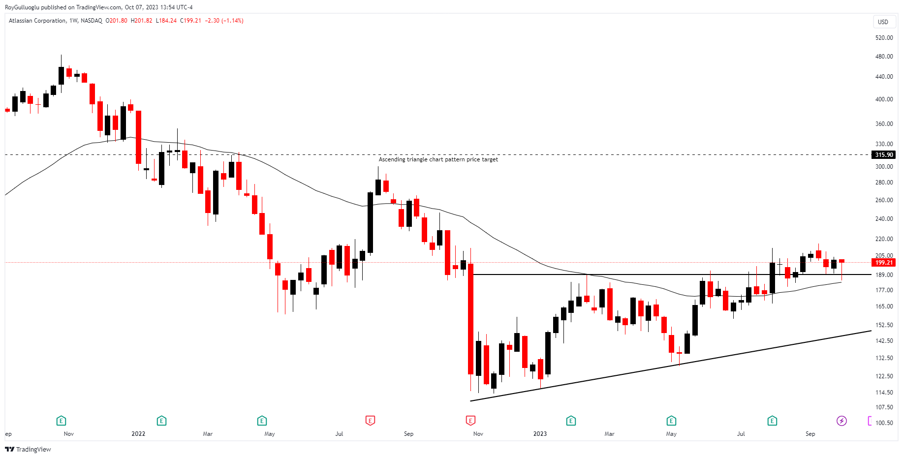 The above weekly chart formed an approximately 9-month-long Ascending triangle chart pattern as a bullish reversal after a downtrend, with resistance at 189.1$ levels.