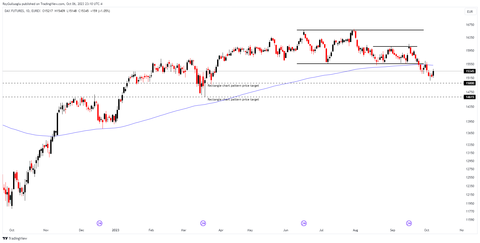 The above daily chart formed an approximately 3-month-long Rectangle chart pattern as a bearish reversal after an uptrend, with support at 15560 levels.