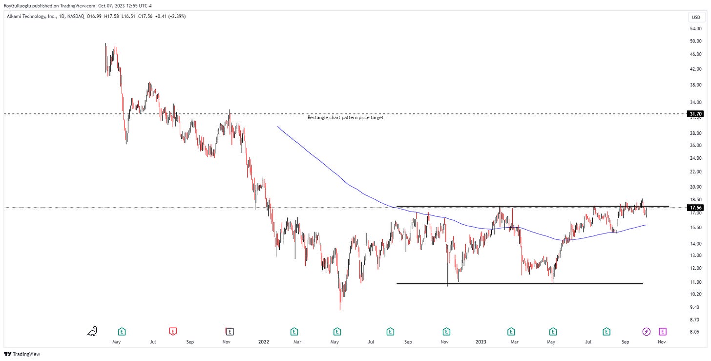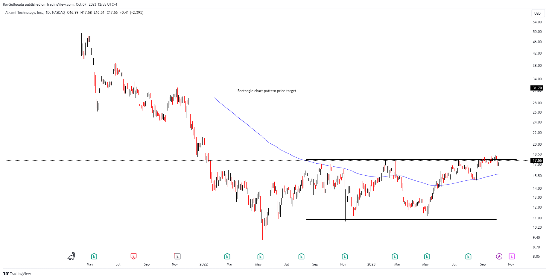 The above daily chart formed an approximately 10-month-long Rectangle chart pattern as a bullish reversal after a downtrend, with resistance at 17.69$ levels.