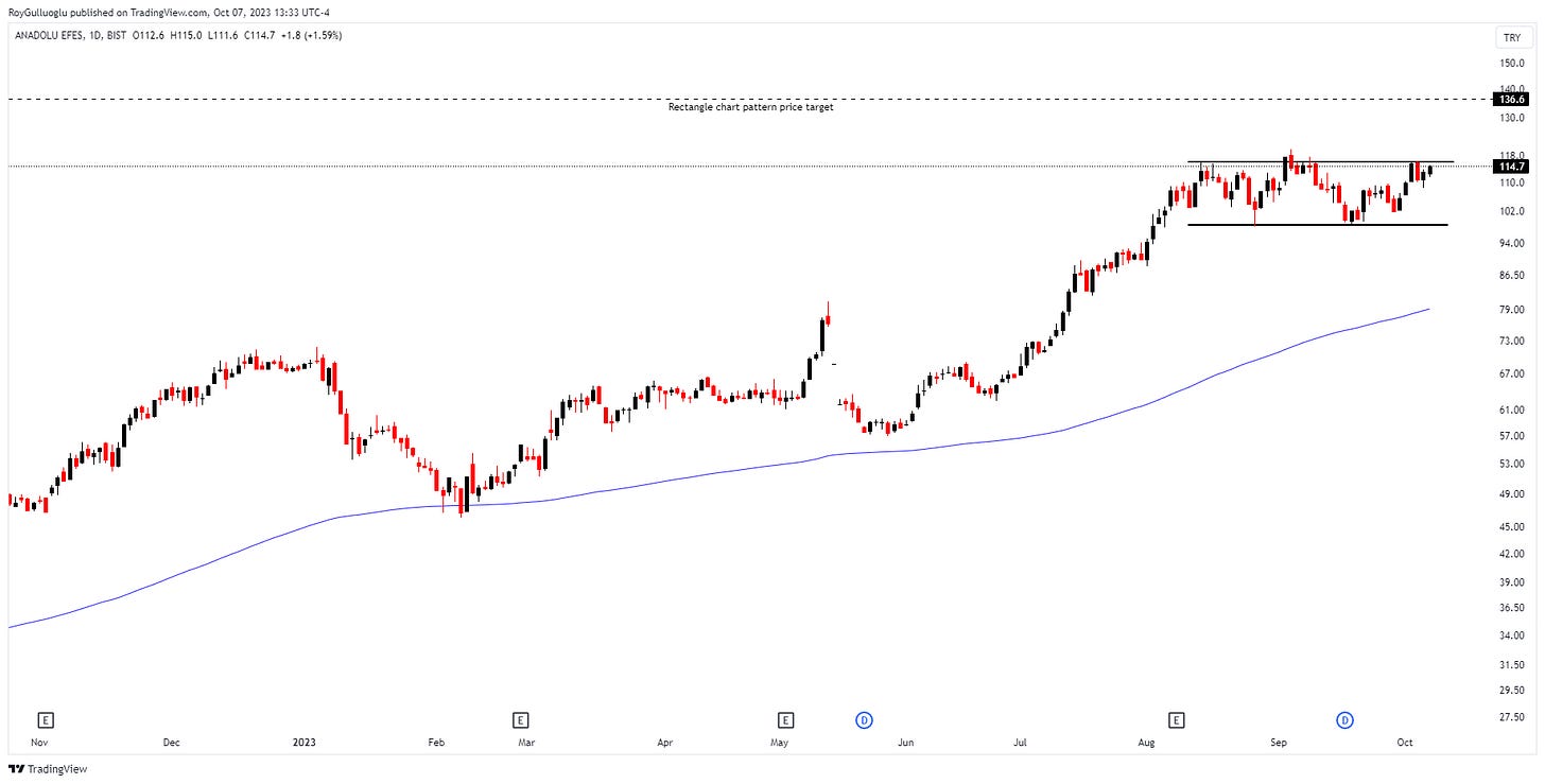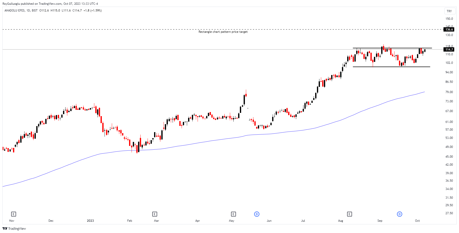The above daily chart formed an approximately 2-month-long Rectangle chart pattern as a bullish continuation after an uptrend, with resistance at 116.1 TRY levels.