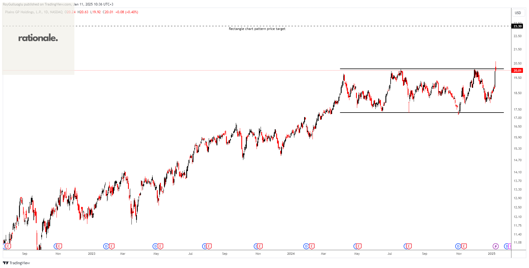 A daily close above 20.7 levels would validate the breakout from the 6-month-long rectangle chart pattern.