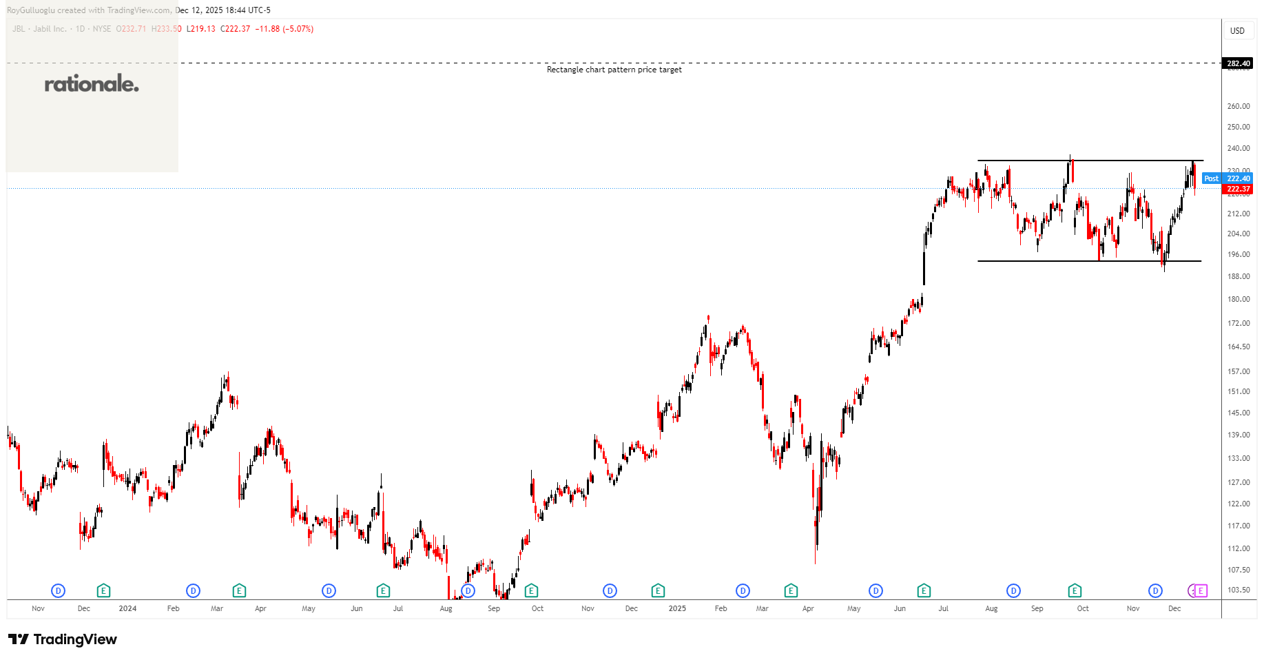 Based on this chart pattern, the potential price target is 282.4 levels.