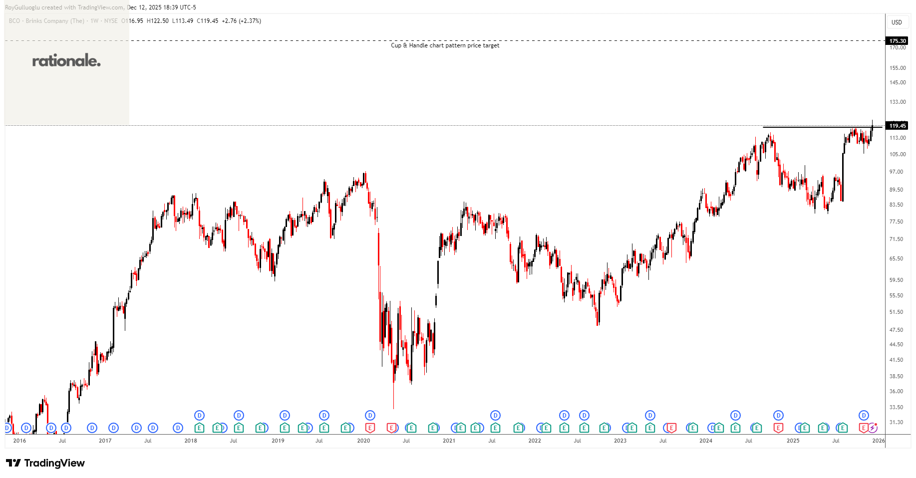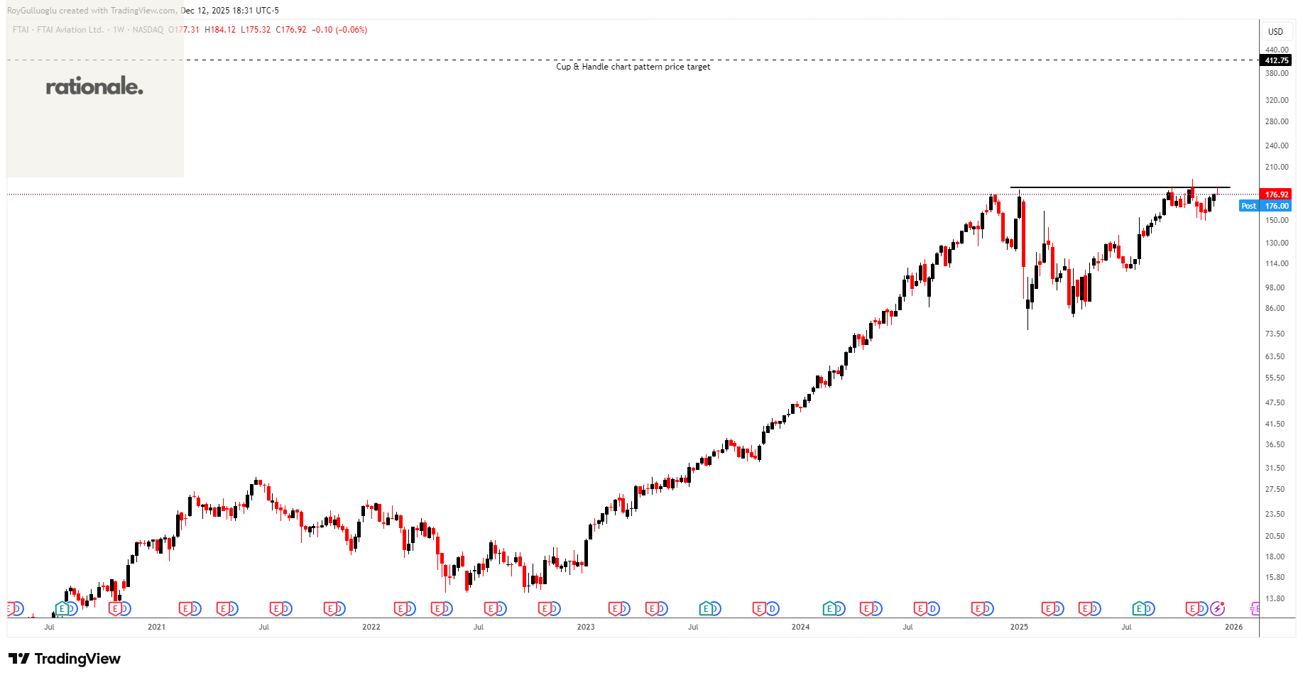 Based on this chart pattern, the potential price target is 175.3 levels.