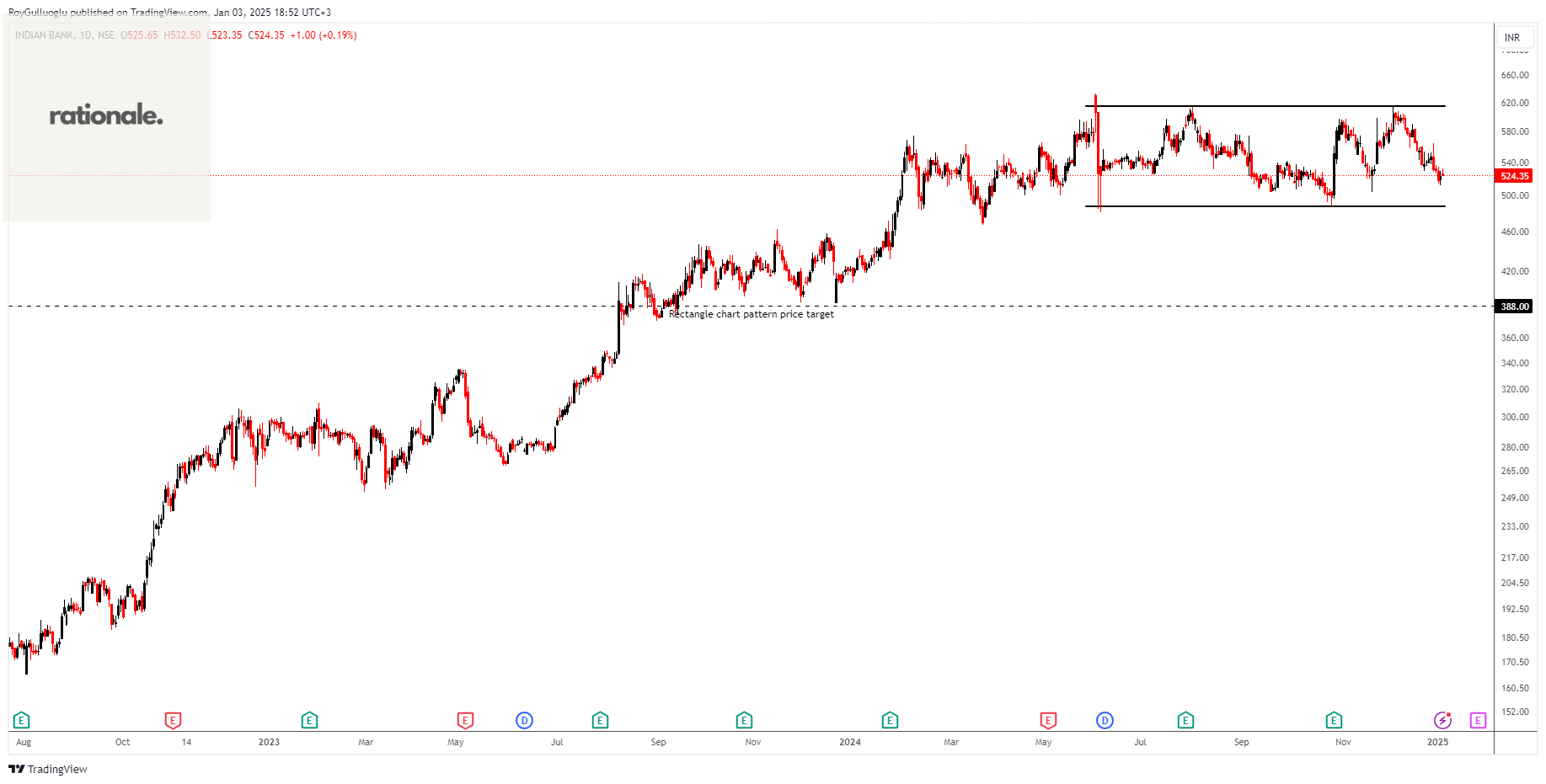 Based on this chart pattern, the potential price target is 388 levels.