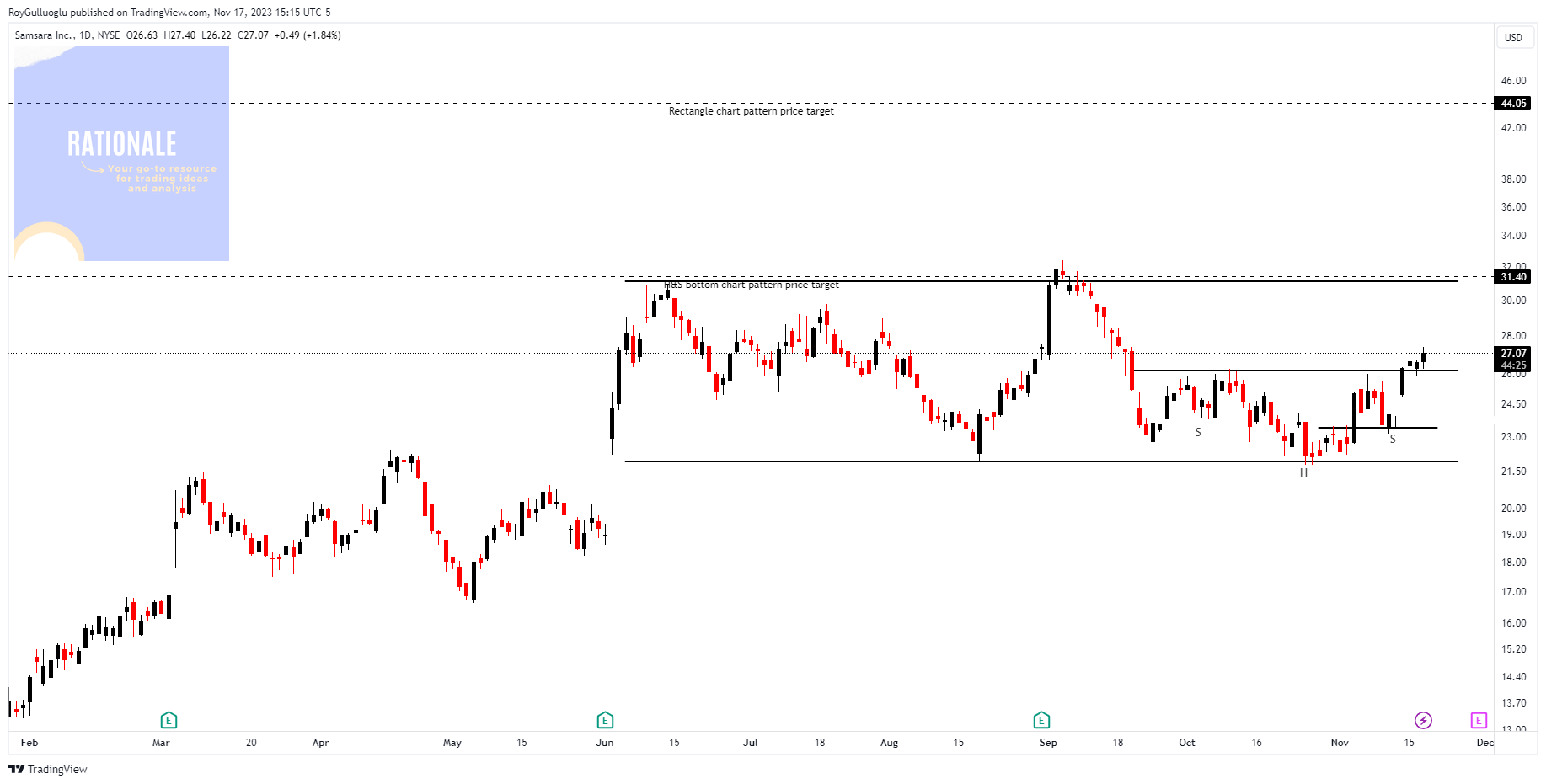 The above daily chart formed an approximately month-long H&S bottom chart pattern as a bullish reversal after a short-term downtrend and potentially forming a 4-month-long rectangle chart pattern as a bullish continuation after an uptrend.