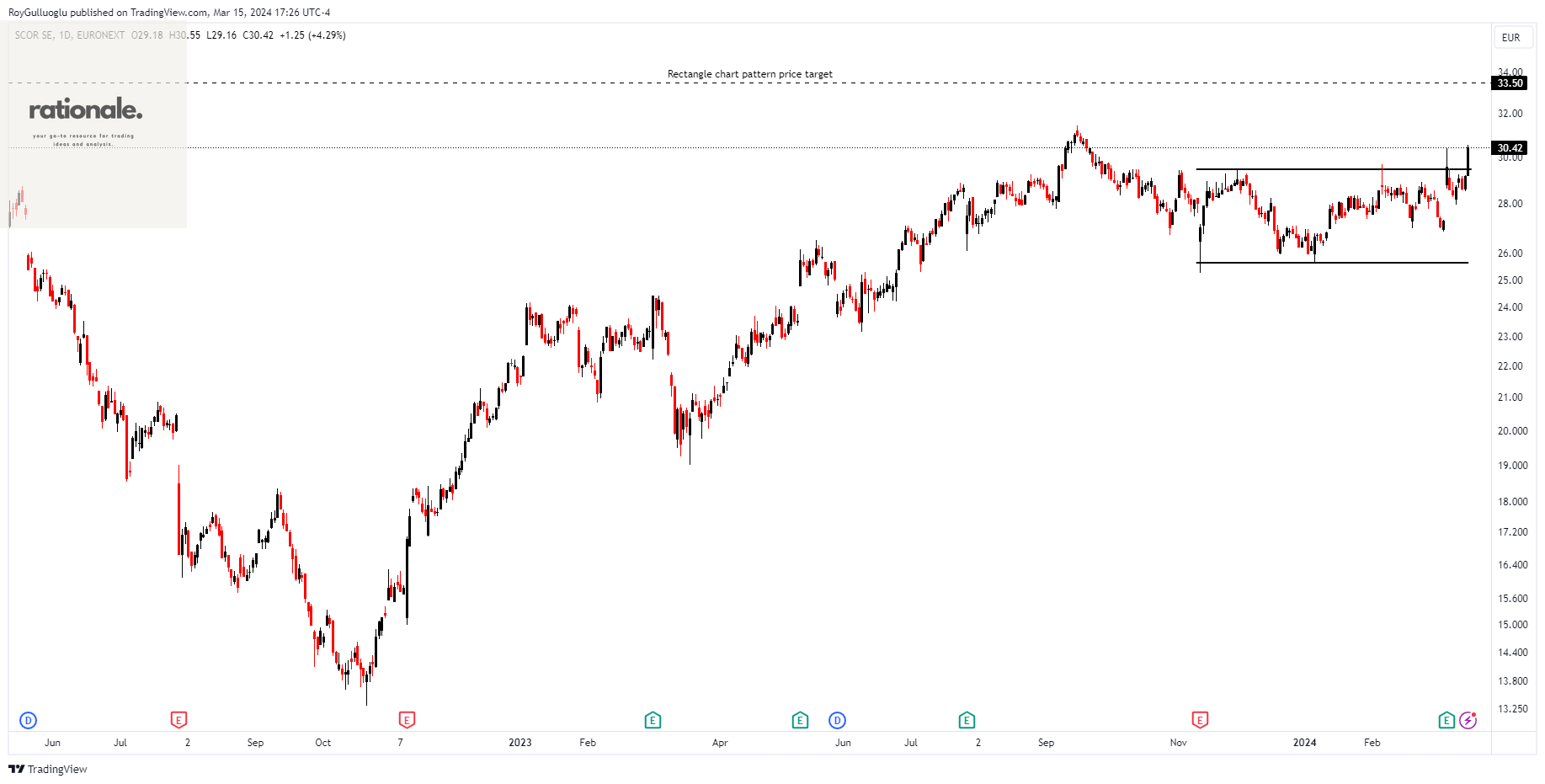 A daily close above 30.35 levels validated the breakout from the 3-month-long rectangle chart pattern.