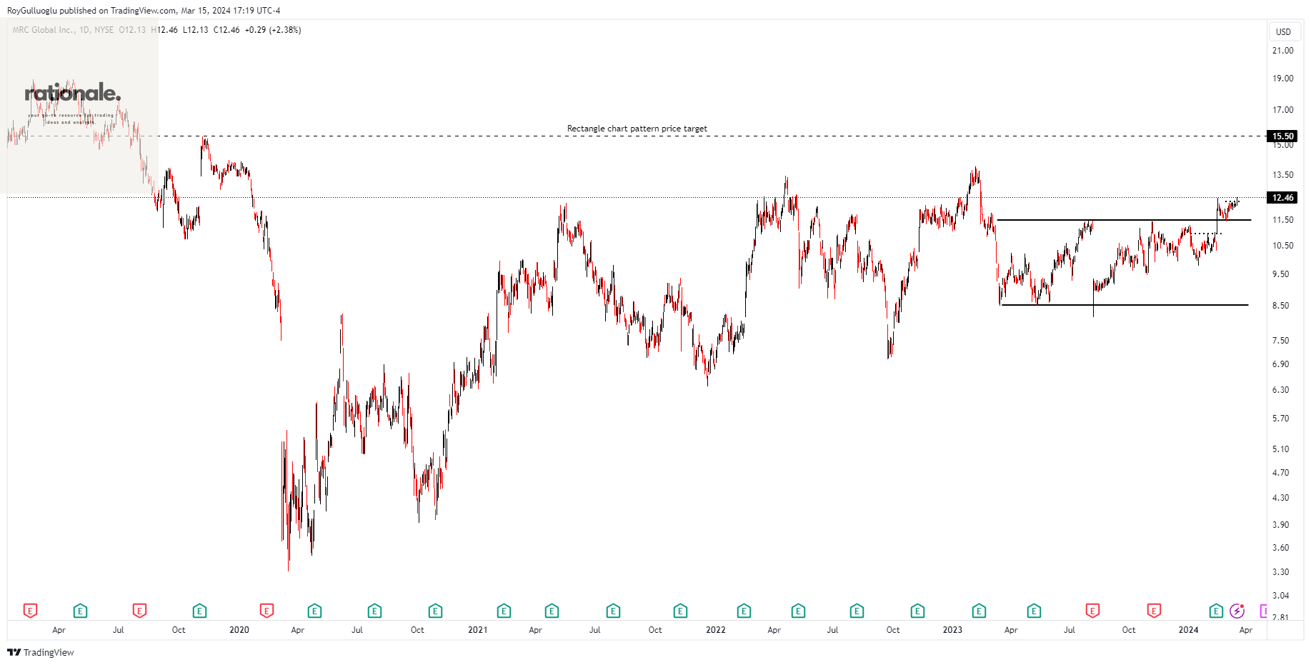 A daily close above 11.82 levels validated the breakout from the 7-month-long rectangle chart pattern.