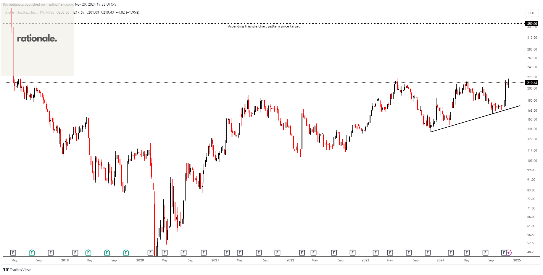 The above weekly chart formed an approximately 20-month-long ascending triangle chart pattern as a bullish continuation after an uptrend.