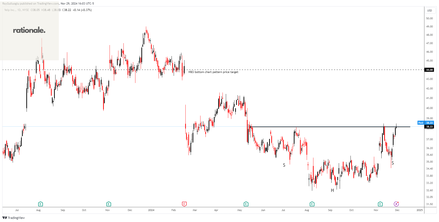 YELP, classified under the "communication services" sector, falls under the “Mid Cap - Growth” stock category.