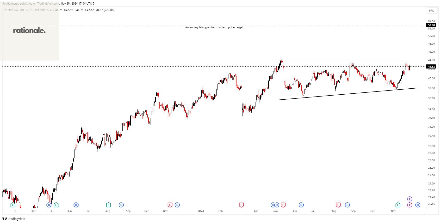 A daily close above 45.11 levels would validate the breakout from the 5-month-long ascending triangle chart pattern.