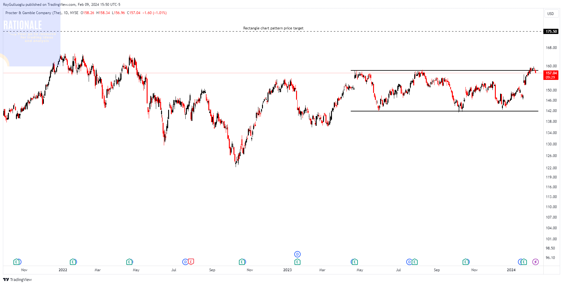 A daily close above 162.84 levels would validate the breakout from the 6-month-long rectangle chart pattern.