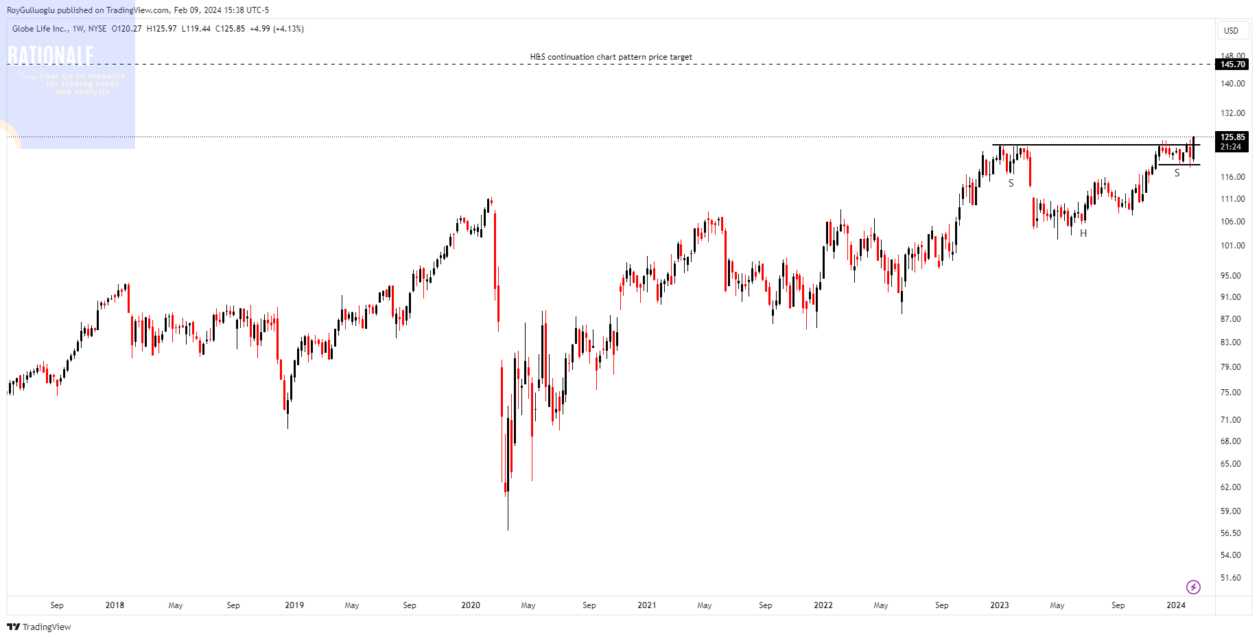 The above weekly chart formed an approximately 14-month-long H&S continuation chart pattern as a bullish continuation after an uptrend.