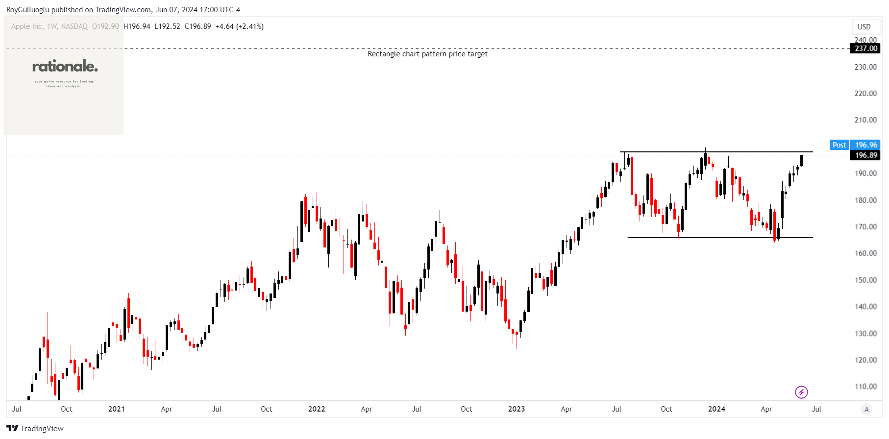 The above weekly chart formed an approximately 11-month-long rectangle chart pattern as a bullish continuation after an uptrend.