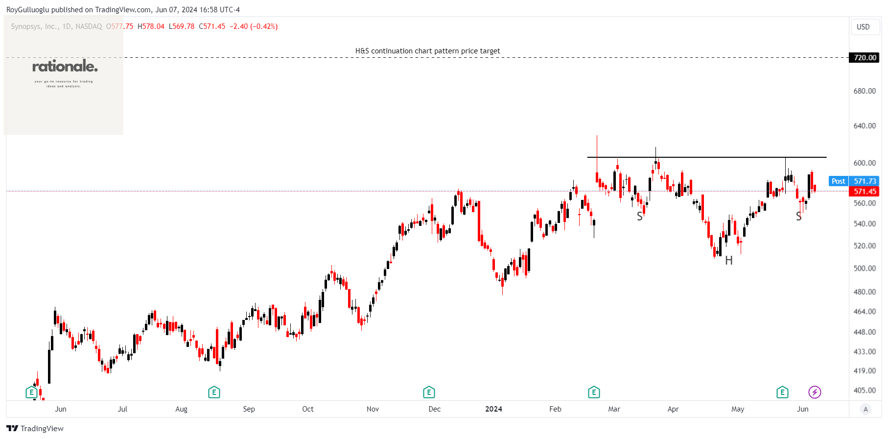 A daily close above 624.28 levels would validate the breakout from the 3-month-long H&S continuation chart pattern.