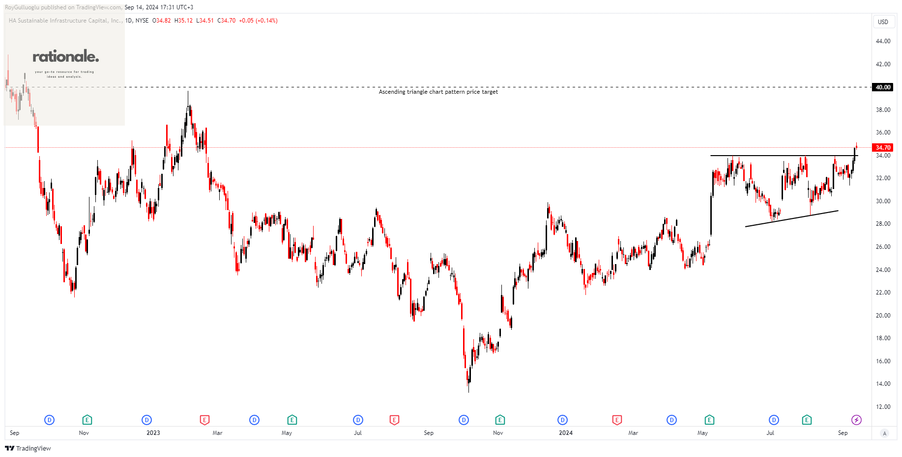 A daily close above 34.98 levels would validate the breakout from the 3-month-long ascending triangle chart pattern.