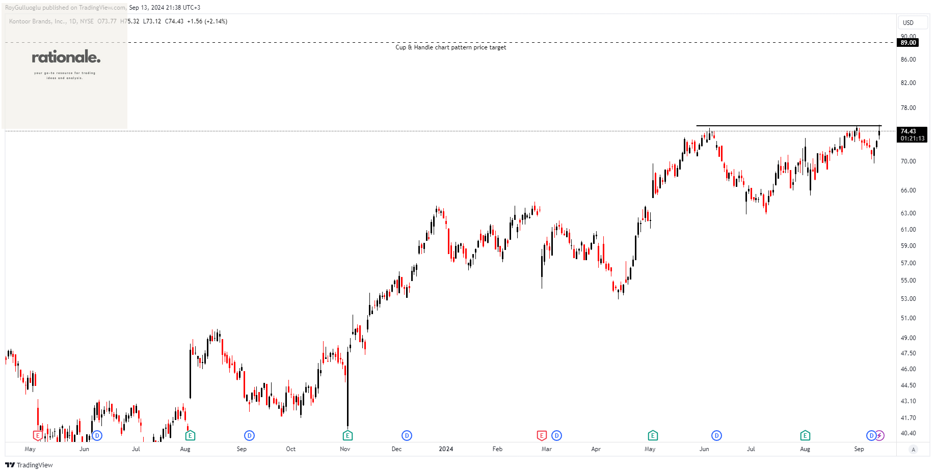 A daily close above 77.43 levels would validate the breakout from the 3-month-long Cup & Handle chart pattern.