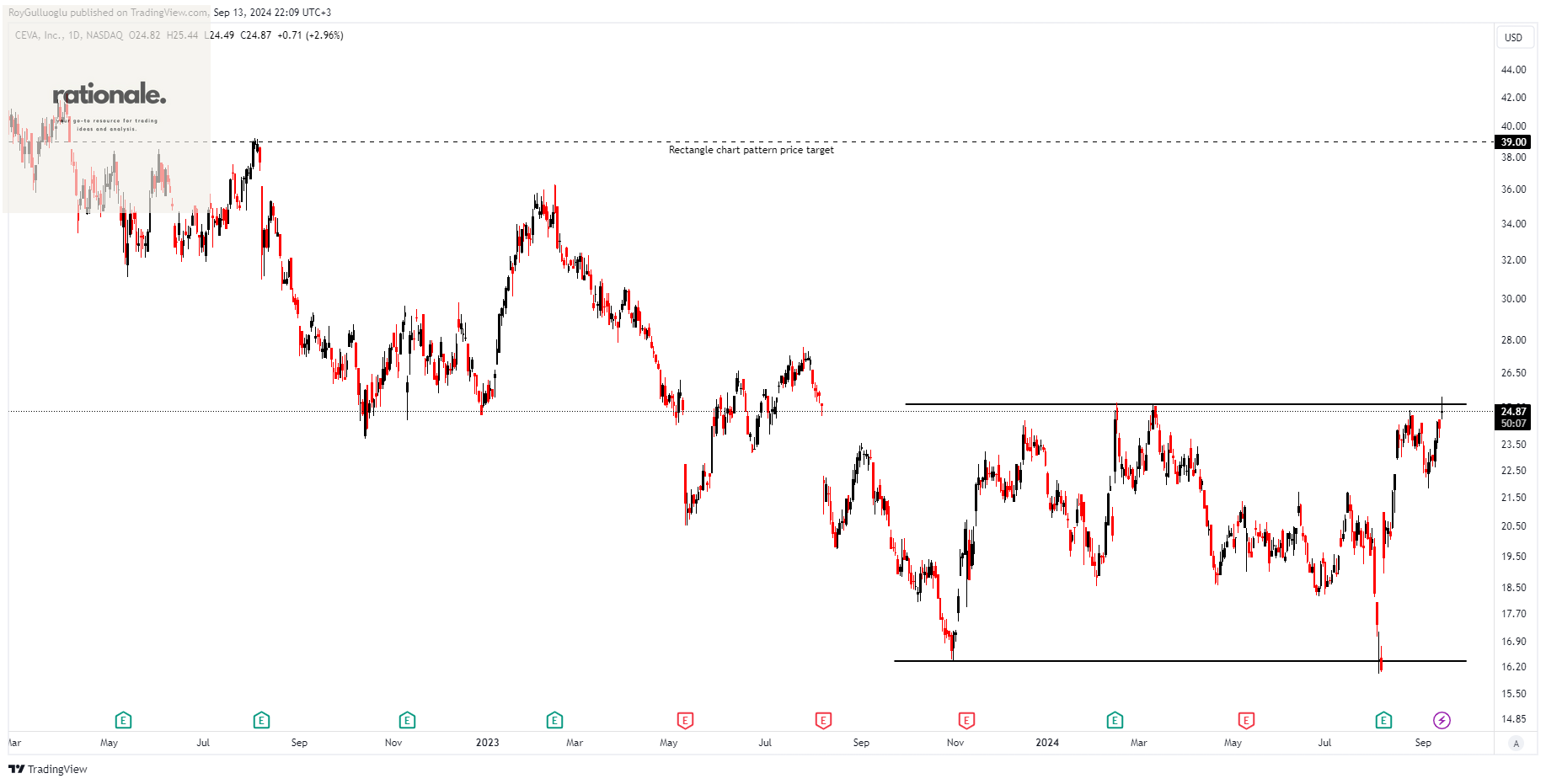 Based on this chart pattern, the potential price target is 39 levels.