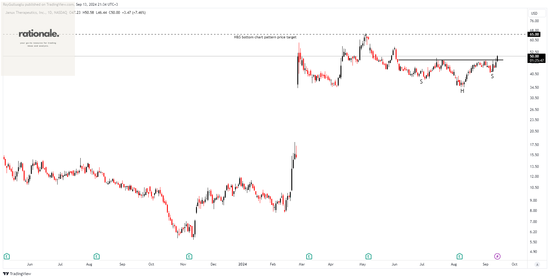 A daily close above 49.2 levels validated the breakout from the 2-month-long H&S bottom chart pattern.