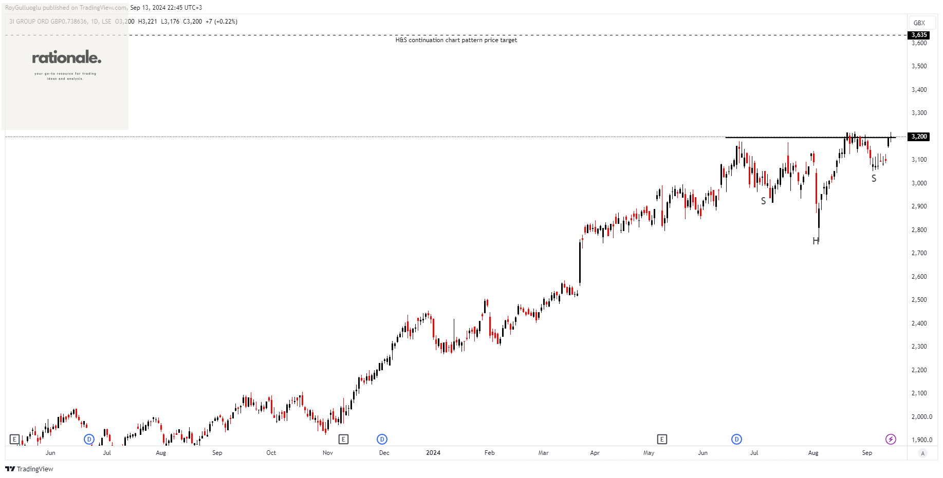 Based on this chart pattern, the potential price target is 3635 levels.
