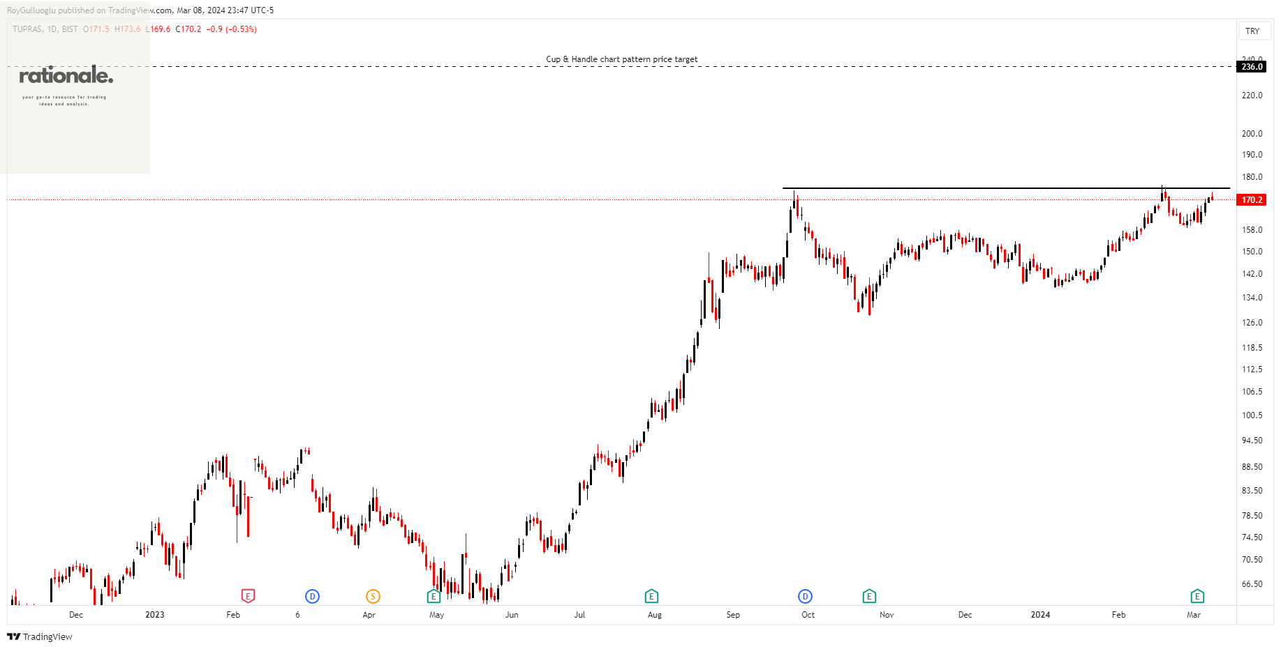 Based on this chart pattern, the potential price target is 236 levels.