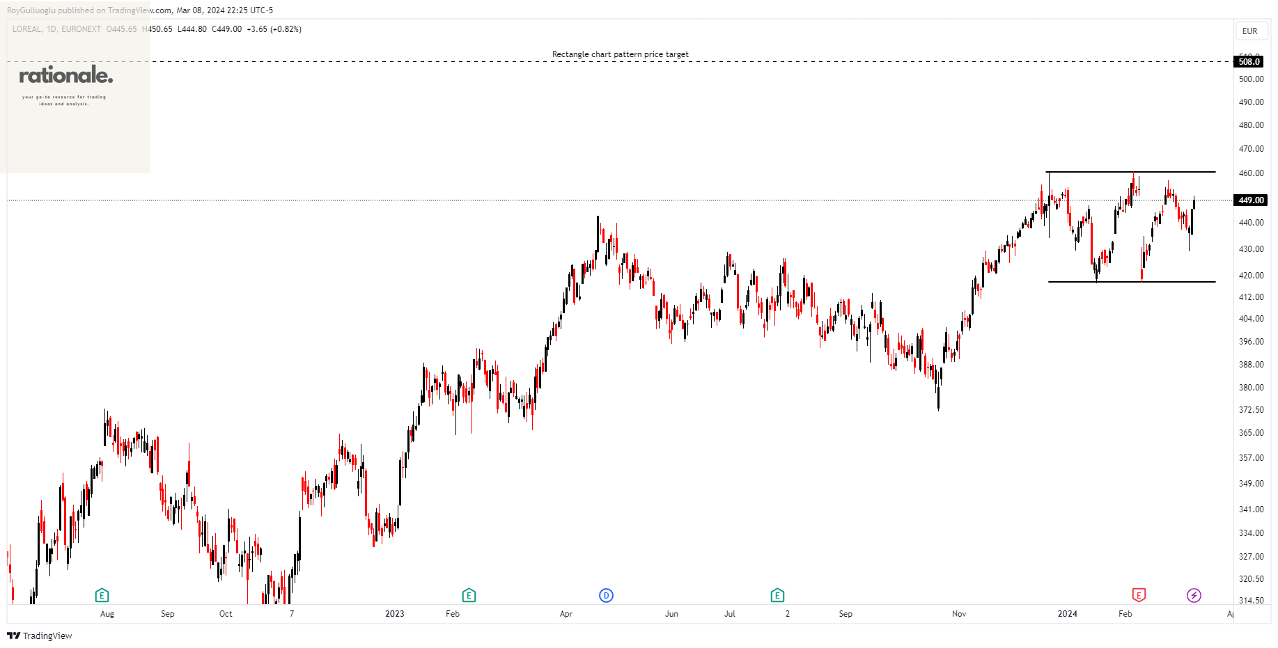 Based on this chart pattern, the potential price target is 508 levels.