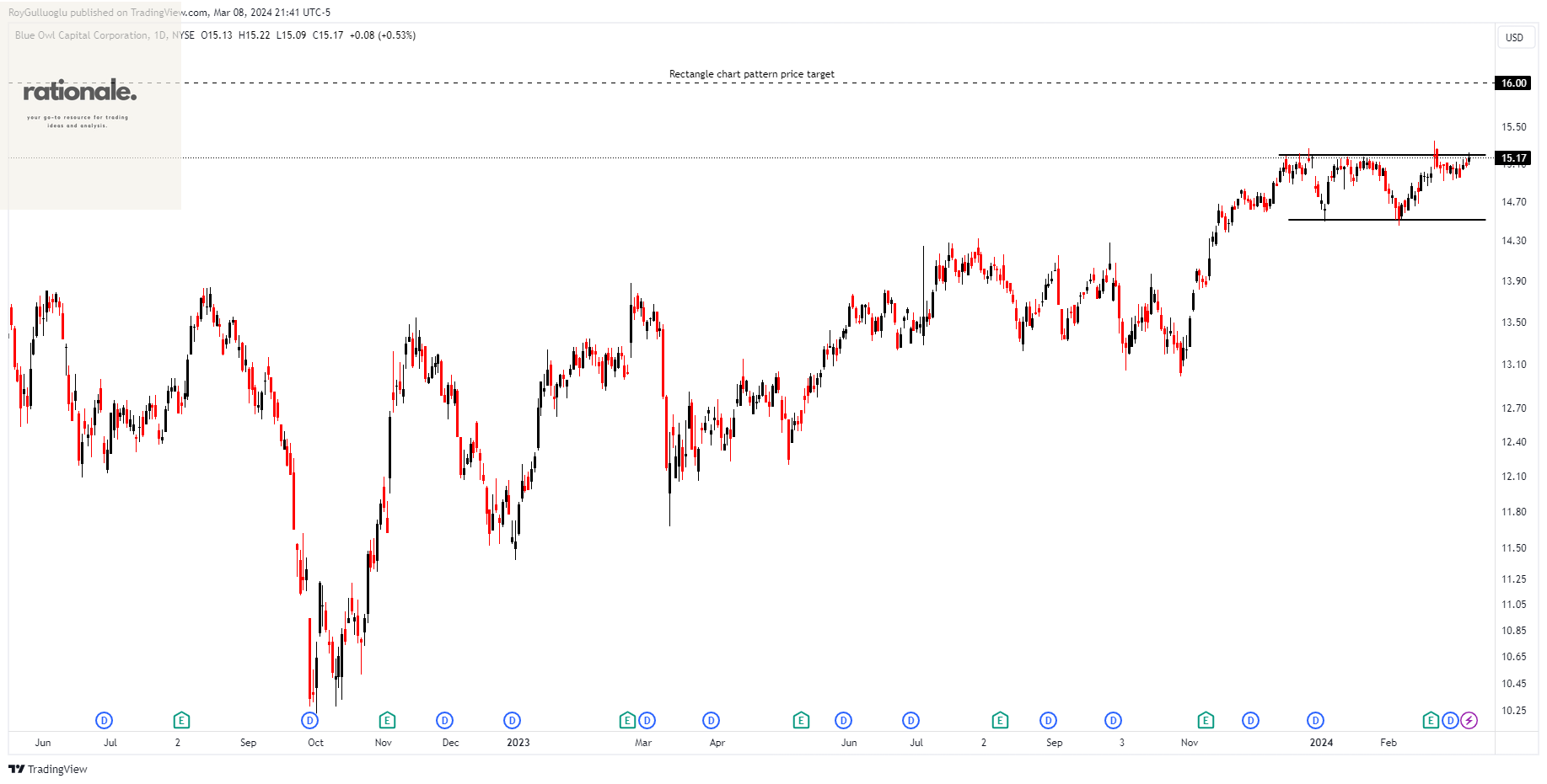 Based on this chart pattern, the potential price target is 14.5 levels.