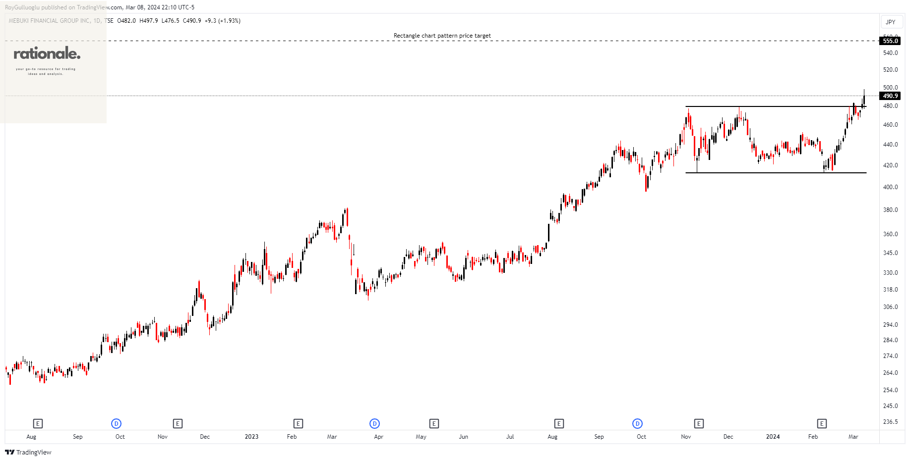 Based on this chart pattern, the potential price target is 555 levels.