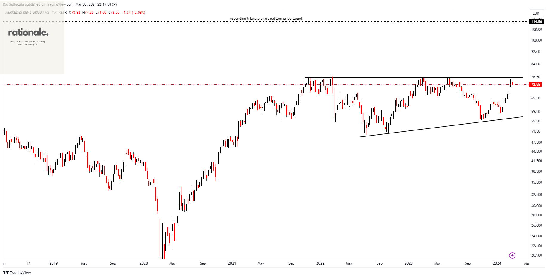 The above weekly chart formed an approximately 20-month-long ascending triangle chart pattern as a bullish continuation after an uptrend.