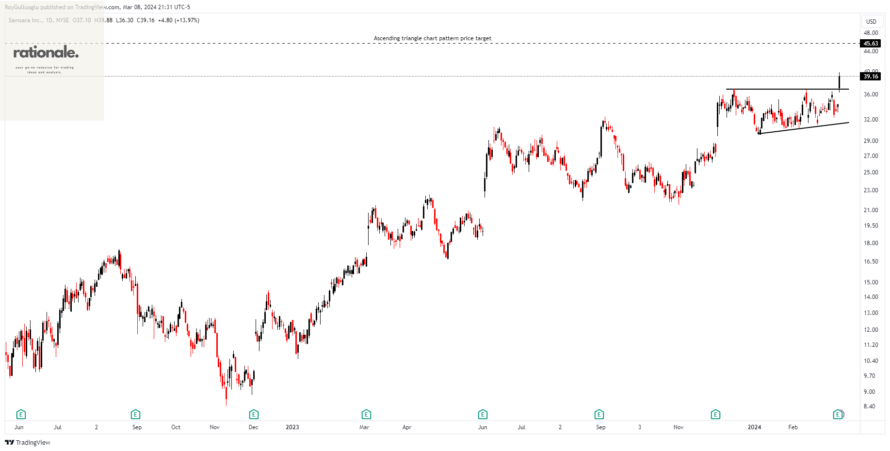 A daily close above 38 levels validated the breakout from the 2-month-long ascending triangle chart pattern.