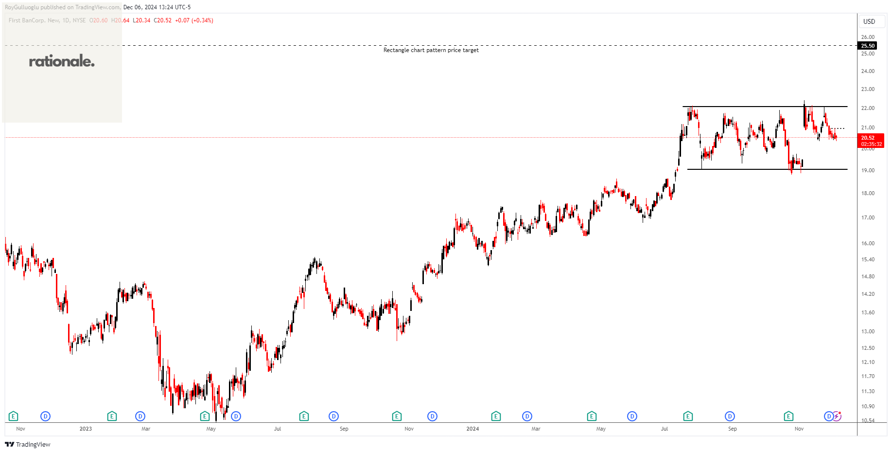 Based on this chart pattern, the potential price target is 25.5 levels.