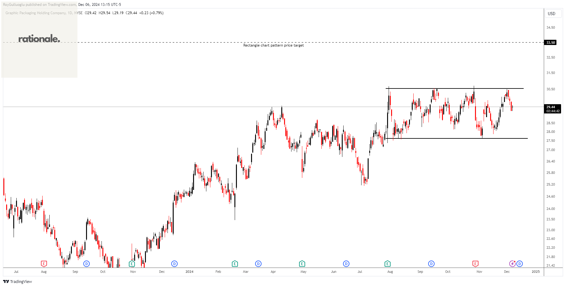Based on this chart pattern, the potential price target is 33.5 levels.