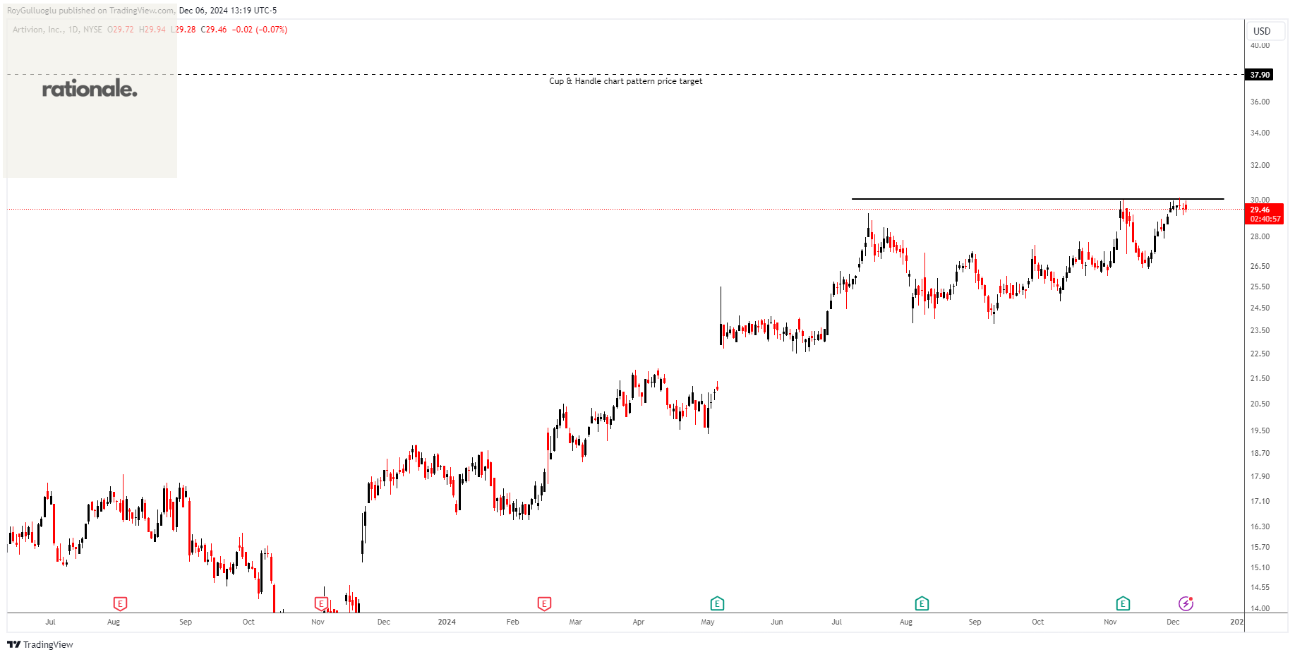Based on this chart pattern, the potential price target is 37.90 levels.